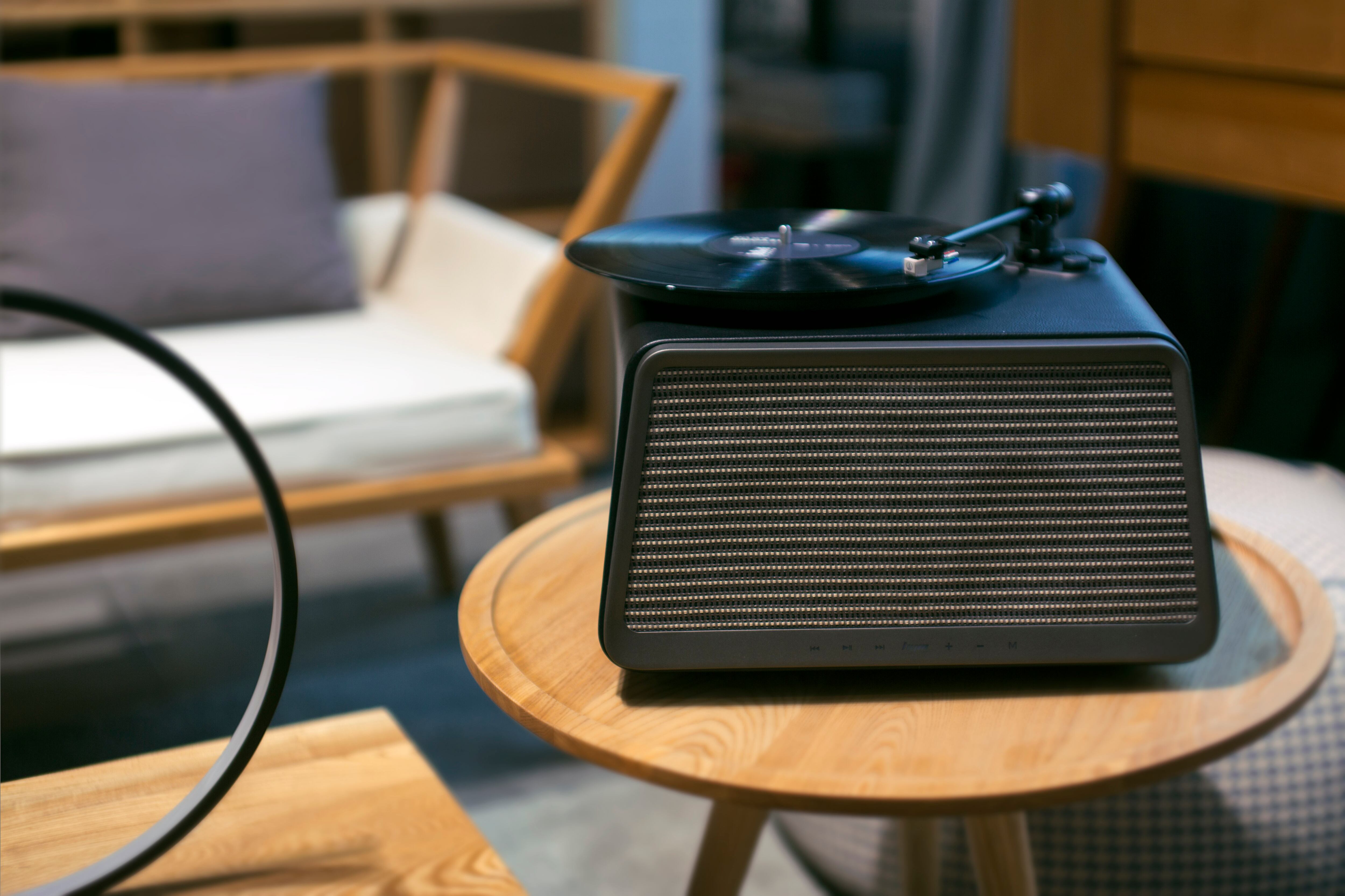 特許取得の三点サスペンション振動システムを組み込むことにより、独自開発のトーンアームをしっかり支えながら共振を排除。大音量でもスピーカーからの振動では音質が劣化せず、カートリッジの重心を最適化して再生することを可能にしています。